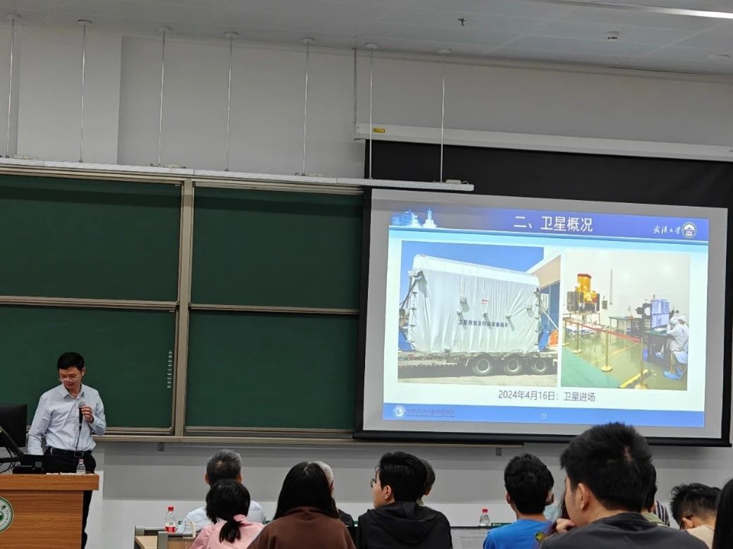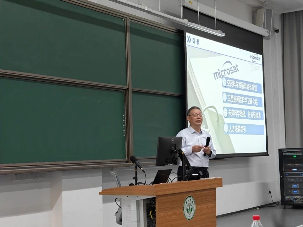 讲座开始,龚建村以《空间科学卫星与人才需求》为题,从空间科学发展态势与规划、微小卫星创新院科学卫星介绍、未来空间科学领域与技术、人才培养思考等四个方面展开了精彩的报告;姜晓军以《观天巨眼》为题,从天文学的视角回顾了人类探索宇宙的历程,介绍了天文望远镜这一探测宇宙的利器;曾国强以《武汉一号高精度智能遥感卫星》为题,详细介绍了武汉一号遥感卫星的相关内容,包括卫星的总装、测试、实验等,展示了遥感卫星的最新观测成果。