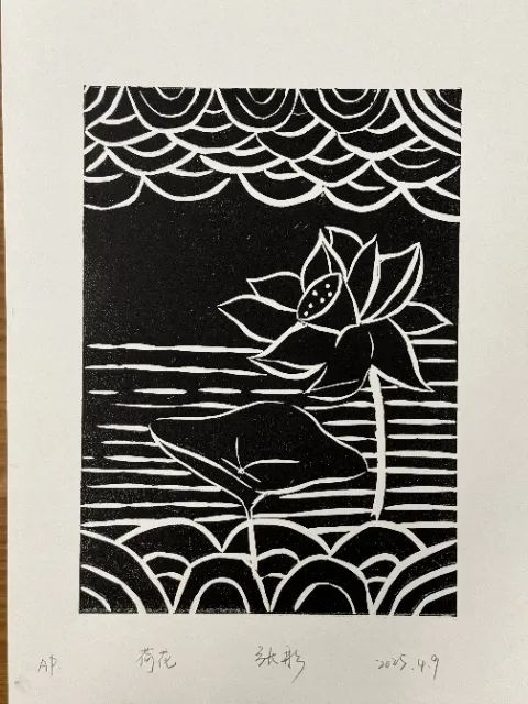 在博物馆陈老师指导下,学生系统学习版画制作流程,从刻刀雕琢橡胶板到上墨拓印,亲身体验传统工艺的精微之处。手执刻刀刻画线条,油墨浸润印版纹理,最终拓印出层次分明的作品。通过“手作”过程,学生深刻体会传统技艺对耐心与匠心的锤炼,感悟艺术创作中“工”与“艺”的辩证统一。