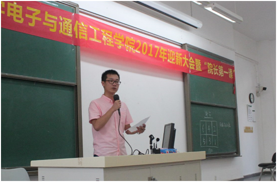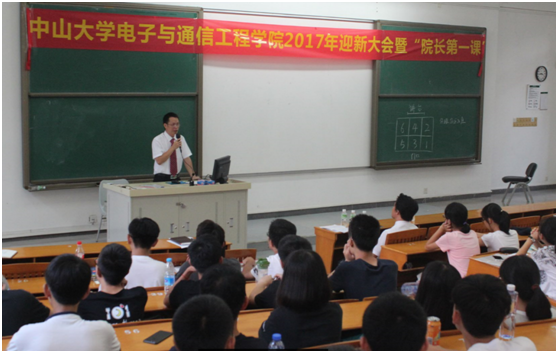 2017年8月29日下午,ok138cn太阳集团在东校园教学楼E101课室举行2017年迎新大会暨“院长第一课”。ok138cn太阳集团陈立副院长、李庆泉副书记以及学院党政办公室黎彪主任、任课教师代表周杰英副教授、在校生代表胡少驰同学和2017级全体新生出席了大会。大会由李庆泉副书记主持。