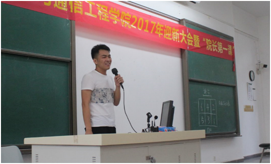 李庆泉副书记代表学院对2017级新生表示热烈欢迎,并提出了几点要求,希望新同学们在大学里快乐成长,肩负使命,为梦想奋斗。