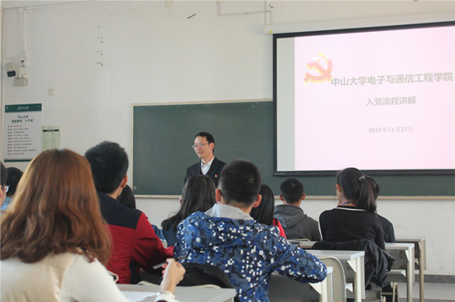2017年11月28日上午10:00,我院直属党支部在广州校区东校园公共教学楼A101召开入党流程讲解会议,旨在帮助同学们更好地了解入党流程,坚定入党的理想信念,端正入党动机,提高认识,积极向党组织靠拢努力。我院学院直属党支部李庆泉副书记、学生组织员谭素琪同志、预备党员刘锐聪同志和三十五名递交了入党申请书的2017级本科生参加了会议。