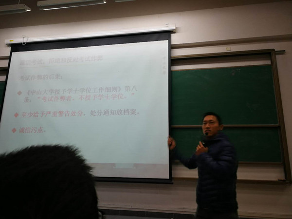 2018年1月11日晚,我院在东校园C201课室召开2017级本科生期末考试纪律教育及寒假安全教育大会。2017级辅导员龚杰副研究员、2017级全体本科生参加了本次大会。