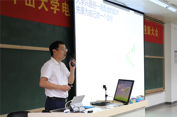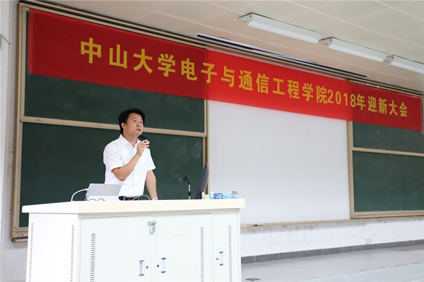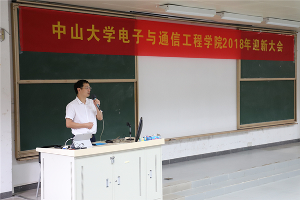 陈曾平院长代表学院热烈欢迎2018级新生的到来,介绍了学院情况,并指出学院一直坚持高标准建设,凝练了学科发展方向,已引进了一批百人计划人才,拥有完整的工科学士、硕士、博士人才培养体系,是电子通信技术人才成长的沃土,勉励大家好好学习和成才。
