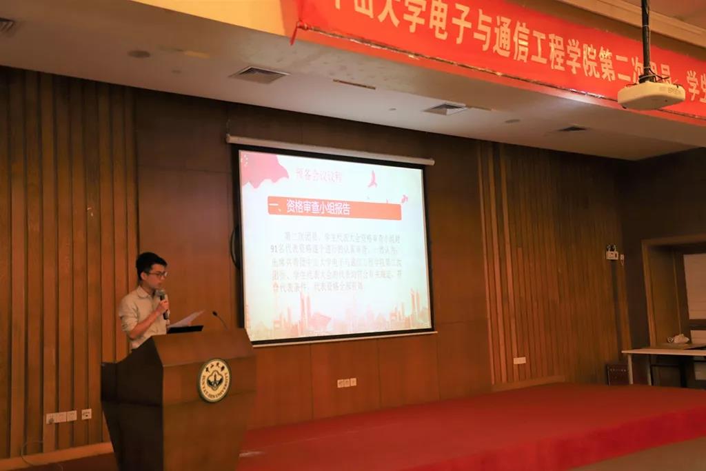 在正式会议上,首先由学院直属党支部李庆泉副书记为本次大会致辞,然后由学院团委学生兼职副书记余昭逸同学及学生会主席陈欣祺同学分别代表学院团委和学生会做学院团委工作报告和学院学生会工作报告。随后,大会分别进行了学院第二届团委委员、第二届学生会主席团成员的选举。每位学生候选人按照顺序上台演讲,精神饱满、富有激情地展示了他们对学院团委工作及学生会工作的设想,并与代表们进行了有建设意义的问答交流。经无记名投票,大会选举产生黎彪、顾宇鹏、郑炜韬、邵雄景、何少烽、何超为学院第二届团委委员,选举产生黄琪皓、李嘉、李朋举、何懿霏、郭锦超、吴靖怡、吴至斌为学院第二届学生会主席团成员。
