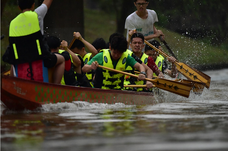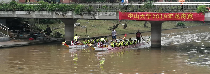 2019年4月20日,太阳集团tyc97282019年“康乐杯”龙舟赛在太阳集团tyc9728广州校区东校园谷河举行。“赛龙舟”,是一种具有浓郁的民俗文化色彩的群众性娱乐活动,同时也是一种有利于增强学生体质,培养勇往直前、坚毅果敢精神的体育运动。今年全校共有79支队伍参赛,1050人在谷河上展开了一场激烈的龙舟角逐。