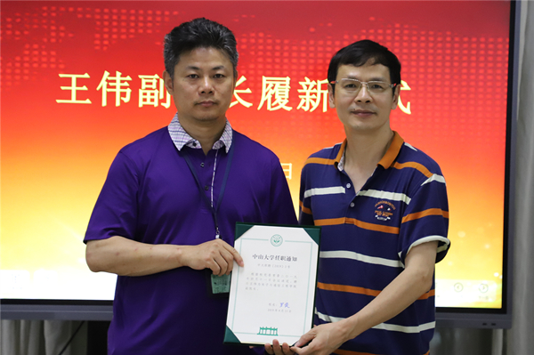 陈曾平院长代表学校向王伟副院长颁发了聘任证书,并介绍了王伟副院长的简介,对王伟副院长的政治素质、工作能力等给予了高度评价,认为王伟副院长政治素质过硬、工作能力强、敢于担当、为人正直、作风民主,相信他担任学院副院长后,一定会在岗位上履职尽责,为学院发展做出贡献。