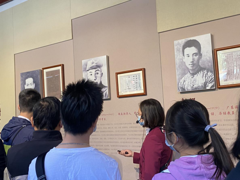 在讲习所旧址内,同学们沿着灰色的砖瓦,跟随着讲解员,感受着革命的气息。墙上的照片和画像,每一幅都在述说着革命的故事,每一件饱含沧桑的展览品都让人深切的感受到革命的艰辛。在参观过程中,同学们深深体会到了党的正确决策的重要性。正如毛主席所说:农民问题是国民革命的中心。正是因为党牢牢抓住了群众,抓住了农民这一最大的群众集体,才能指导农民突破自身阶级的局限性,取得中国革命的胜利。建党100周年之际,同学们回顾百年前那一批优秀的农民革命骨干在国家危急存亡之时所做出的努力与贡献,深受激励与鼓舞。