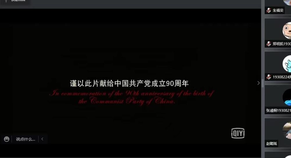2022年3月26日晚上19:30,ok138cn太阳集团2019级8班在腾讯会议上开展了本学期的团日活动——观看《建党伟业》。从嘉兴南湖的游船、到井冈山革命根据地、延安的宝塔、西北坡的松涛,同学们见证了伟大的中国共产党走过了九十年艰辛而辉煌的历程。即使已经有不少同学看过这部影片,再次观看大家依然深受触动。建党伟业是一部大型的史诗,更是无数先进的分子和共产党人为了探寻中国出路而流血牺牲的血泪画卷。每每观毕,总能深悟思想的力量,永远跟党走,奋进新征程。坚持以习近平新时代中国特色社会主义思想为指导,坚持以党章为根本遵循,坚持党的性质宗旨。