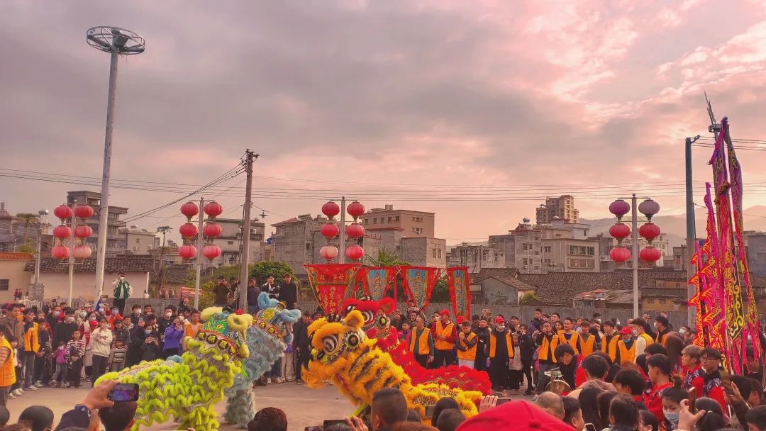 作品说明:因为疫情村里三年没有举行迎神活动,年轻小伙们自行组成舞狮队,在村里祭拜的庙前举行舞狮活动庆祝新年,众多村民前来围观。