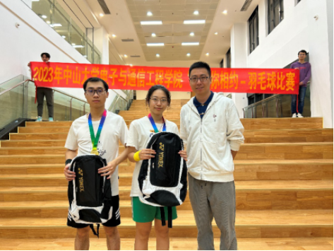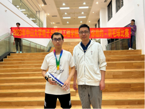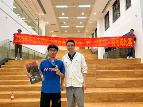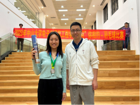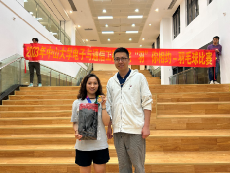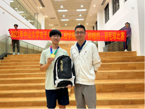 自从大学有幸进了院队跟着杜浩江队长进行系统的学习和训练,如今羽毛球已是我最离不开的一个爱好。我有幸在混双这个项目上夺得冠军,心中喜悦的同时也明白,除了我自身的努力,这个金牌更离不开队友李沛静同学的默契配合,离不开各位球友和实验室同僚们的加油助威,今后我将继续提高球技,取得让自己更满意的表现。
