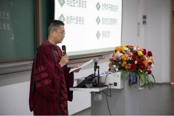 教师代表朱祥维老师、段克清老师、肖钰老师动情地回忆了四年来和同学们在一起共同成长的点点滴滴,看着同学们为追逐梦想,将辛勤的汗水化为青春的热血,中大的热土上留下了同学们步履坚实的脚印。鼓励同学们以青春之我、奋斗之我,砥砺奋进,希望同学们在未来都能成为一个有担当有抱负懂感恩明事理的人。