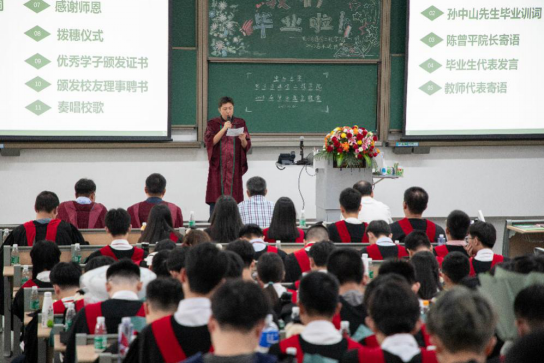 光阴转瞬即逝,离别之际,陈曾平院长为2023届毕业生送上了毕业寄语,这饱含了陈院长对毕业学子们的殷殷期望,看着同学们从青涩少年逐渐变得成熟稳重,陈院长提出了几点嘱托:首先是以梦为马,不负韶华,始终秉承“博学、审问、慎思、明辨、笃行”的校训,诠释和践行中大人的担当,愿同学们用奋斗的青春,书写壮丽的人生篇章。二是常怀感恩之心,无论是朋友关照之恩,老师教育之恩,父母养育之恩还是国家栽培之恩,都需要我们用至诚的心去感谢,用实际行动去回报。最后,希望同学们可以“常回家看看”,愿此去繁花似锦,再逢一切如故。