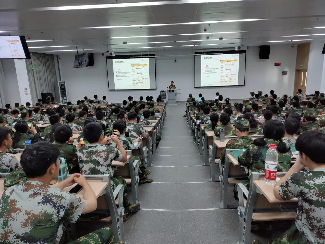 在紧绷的军训技能训练之余,学院还特意邀请党委组织部万海峰老师和学校心理健康中心陈洁老师为新生们进行讲座,明晰了为什么入党的基本问题,普及了心理健康知识。不仅要能端正军姿,强健体魄,还要能在党课中提升认识,在心理讲座中学会整理自己的心理状态,做德才兼备,具有领袖气质,家国情怀的中大er。