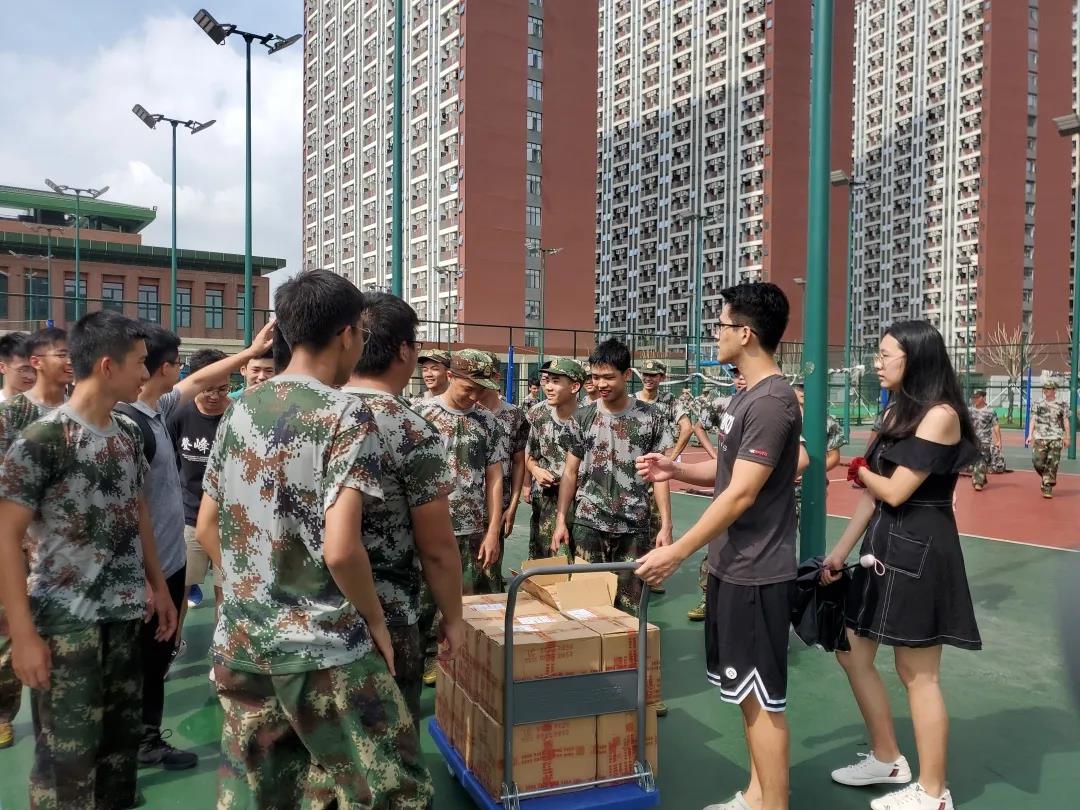 连续多日的雨天过去,气温陡然升高。烈日炎炎,同学们正处于体力和精神的双重疲劳之中,此时,没有什么比一瓶脉动、一盒王老吉更沁人心脾的了。如果有,那便是党委古添雄副书记(主持工作)与郑仕勇副书记激奋人心的的亲切问候,古添雄副书记(主持工作)提到大家要有军人精神,能吃苦耐劳,不畏困难,要向教官学习,同时郑仕勇副书记也赞扬了大家的训练成果。这次的送清凉犹如炎炎夏日中的一缕清风,不仅缓解了同学们身体上的疲惫,更给予了同学们精神上的鼓励和支持。