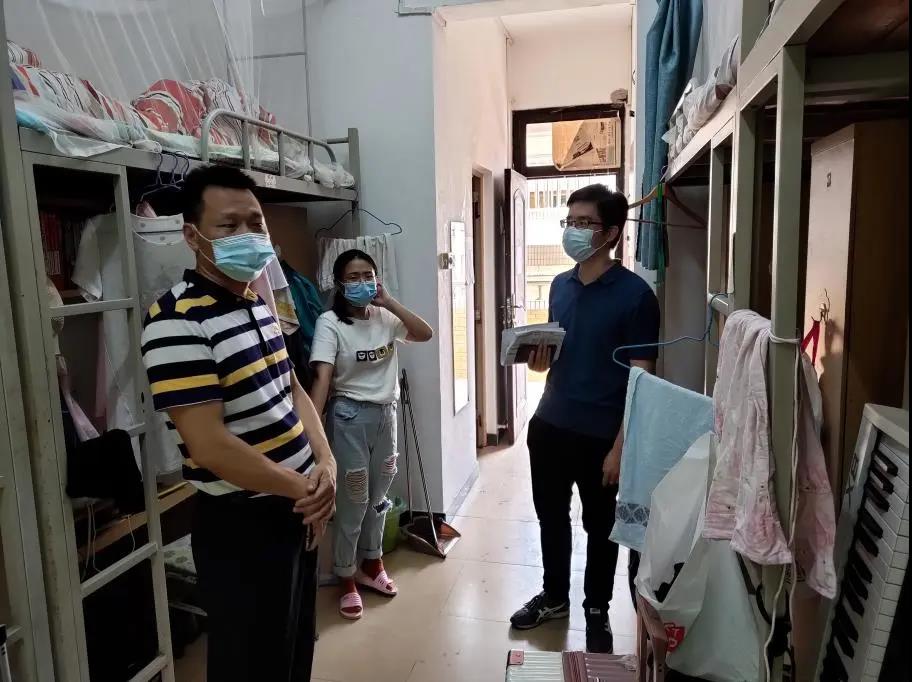5月19日,学院党总支古添雄副书记(主持工作)代表学院到学生宿舍探望返校学生,关切询问返校学生毕业论文完成情况、工作去向和日常生活中的问题,提醒同学们返校后一定要注意个人健康和卫生消杀,严格遵守返校纪律。叮嘱同学们有困难和需要要第一时间联系辅导员和学院,学院将尽最大努力为同学们做好服务工作。
