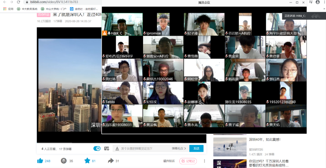 本次团建活动于2020年10月23号下午4:40-5:15在腾讯会议上举行,内容为观看“《深圳一日》一天 一城 一生” 和 “来了就是深圳人” 两个有关深圳特区的视频,观看完后还随机抽选了同学发表观后感言。