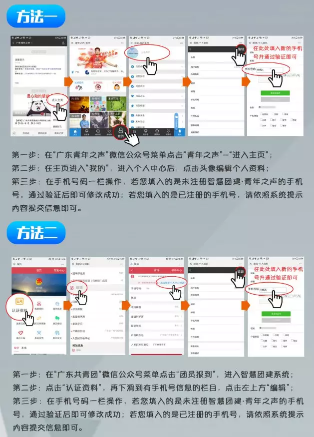 可在团员的“认证资料”处点击编辑,跳转至青年之声个人中心,修改绑定的手机号码
