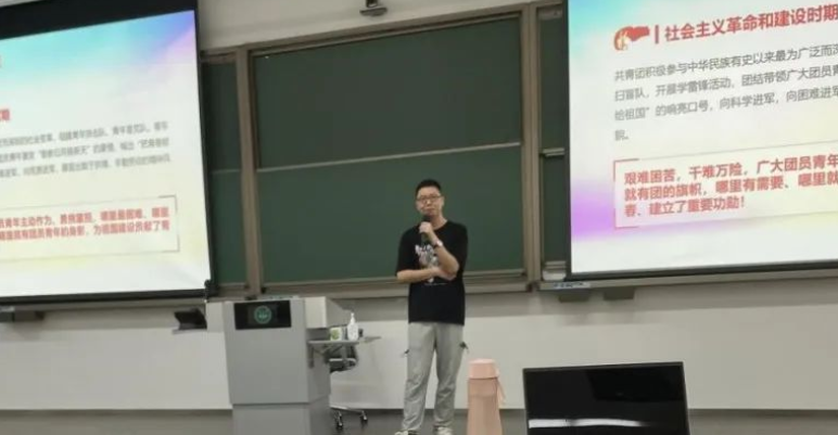 武辰老师首先带领大家回顾了共青团百年奋斗历程,讲述了社会主义革命和建设时期共青团组建青年突击队、青年垦荒队、青年扫盲队,向科学进军,向困难进军,向荒原进军的奋斗故事,希望学员能认真思考自己将来对于国家的贡献,向学员提出了德才兼备,吃苦耐劳,不忘初心的要求,并勉励学员天天向上。