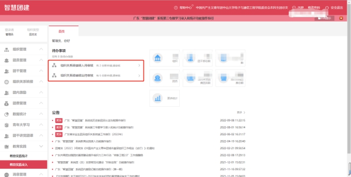 深入团组织内部结构基于广东智慧团建系统负责学院各支部(总支)智慧团建账号管理、团员团关系转接申请审核、作为学院团委和团员的沟通桥梁、策划或协助相关活动竞赛或团日活动、团组织建设、团员表彰(“五四评优”)、青年大学习网上团课学习的组织、团费缴纳提醒等。