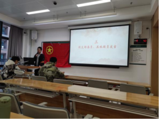 12月8日上午8:30,会议准时开始。团支部书记马楠奇同学带领全体团员开展会前学习,一同观看习近平总书记在中国共产党第二十次全国代表大会上的重要讲话。随后,全体团员起立,共唱团歌,为本次专题组织生活会正式拉开序幕。