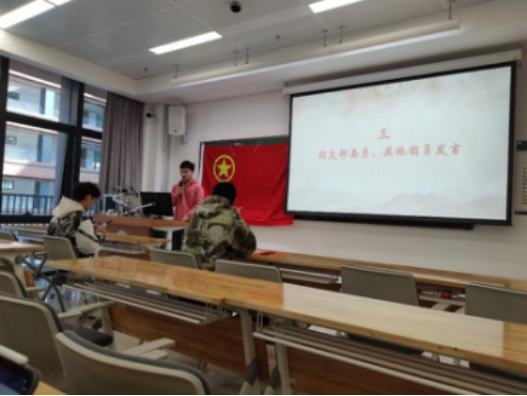 在会议的第三部分,团支部委员率先发言。组织委员金鹏龙自己结合一年来的学习工作经历,对自己的2022年进行回顾,并结合习近平总书记对广大共青团员提出的“五个模范”要求,分享了自己对新时代共青团员的理解。接着,其他团员依次发言交流心得体会,分析自己思想道德和学习工作方面的不足及努力方向,对新一年的学习与生活作出展望。
