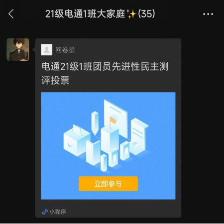 团支书借助小程序在班群中发起投票