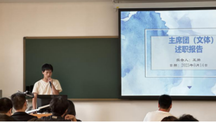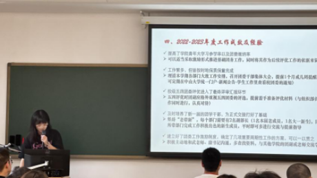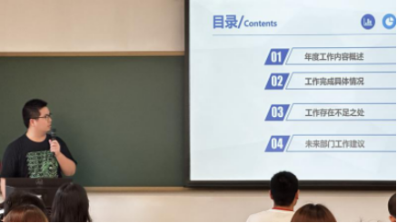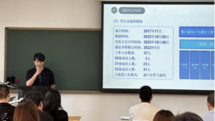 为分享团委学生会一年来的工作情况与经验总结,第六届团委学生会2022-2023年工作述职大会于2023年9月14日中午12:30-14:20在东教学楼1-406正式召开。会议由团委书记武辰老师主持,参会成员由团委、学生会各部门负责人及候选接班人。