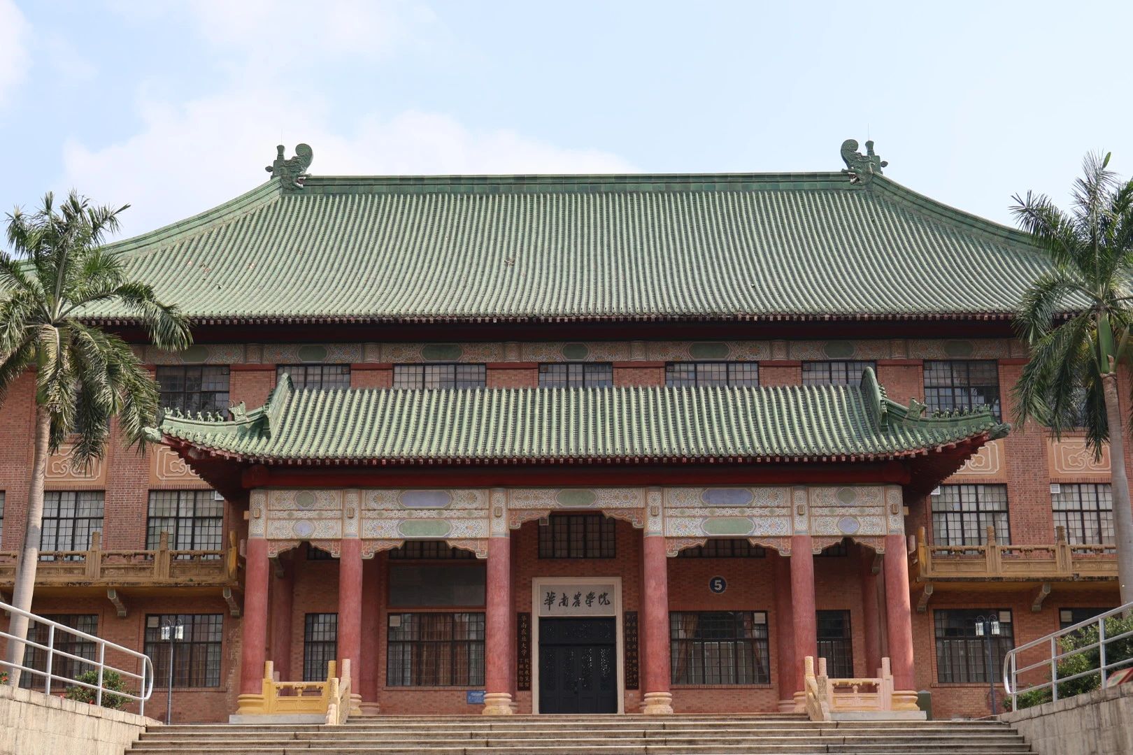 华南农业大学5号楼作为国立太阳集团tyc9728理学院生物地质地理学系大楼时,陈国达院士、罗雄才教授、吴尚时教授、张宏达教授等诸多著名学者都在此学习工作过,现为华南农业大学校史展览馆暨丁颖纪念馆。展厅内收藏的丁颖眼镜、千粒穗及丁颖手稿、著作等珍贵文物史料和结合现代多媒体技术的照片影像、特色石雕画与电子沙盘,彰显着丁颖先生治学研究之伟绩。