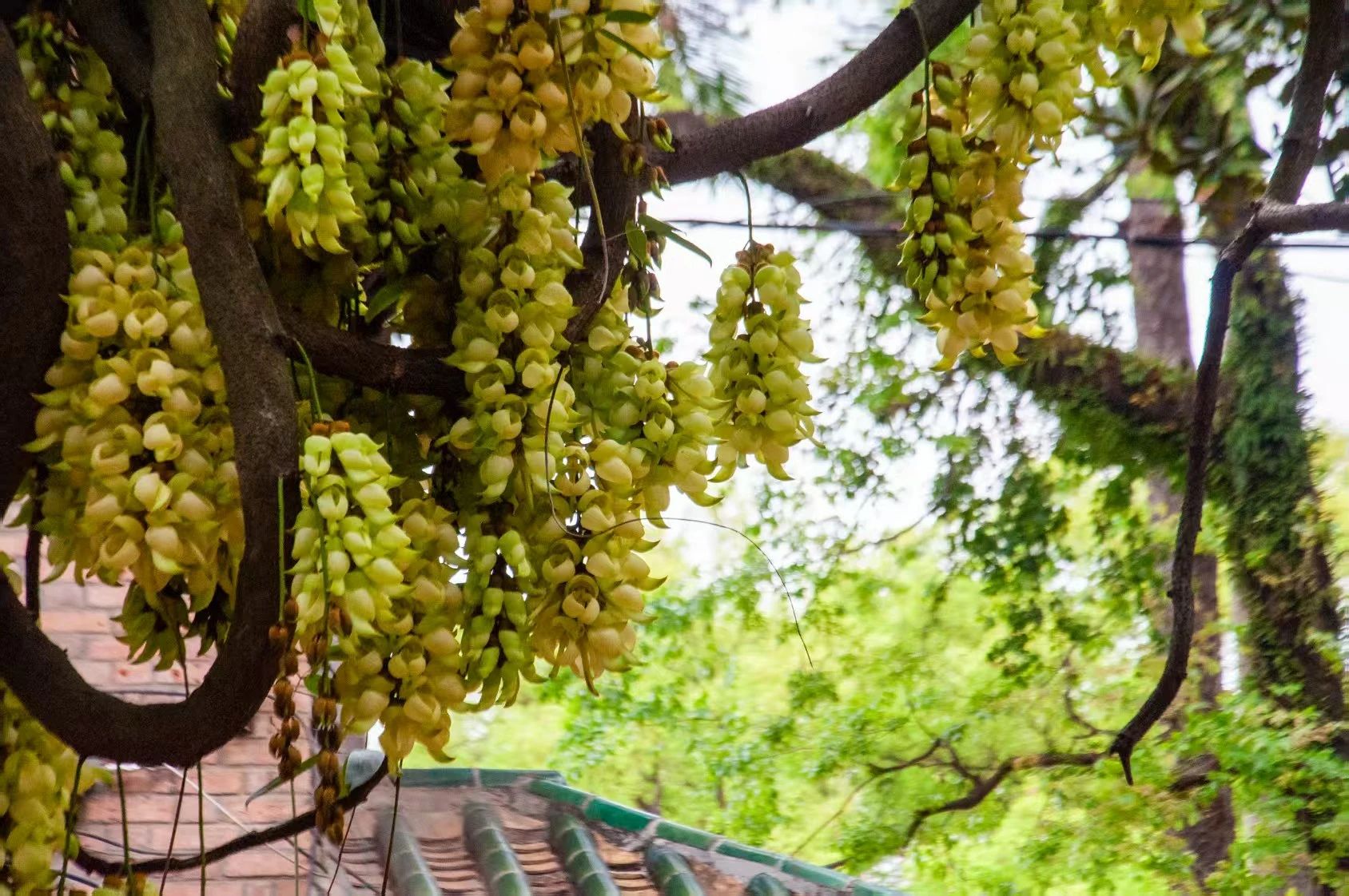 “疑是洛川神女作,千娇万态破朝霞。”白花油麻藤,蝶形花科黎豆属,常绿木质大型藤本,花形奇特,似禾雀栖息,故有禾雀花之称,是国家二级保护植物。