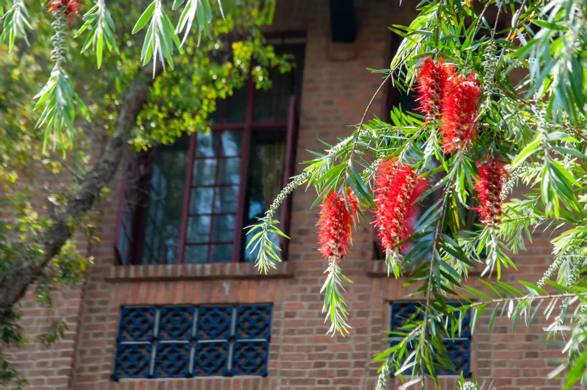 “千层红蕊映春晖,万缕柔丝舞风姿。”红千层,桃金娘科红千层属,因其花形独特,似瓶刷而得名。其树皮光滑,呈灰褐色,叶片细长,花为穗状花序,花色鲜艳,多为红色或粉红色。