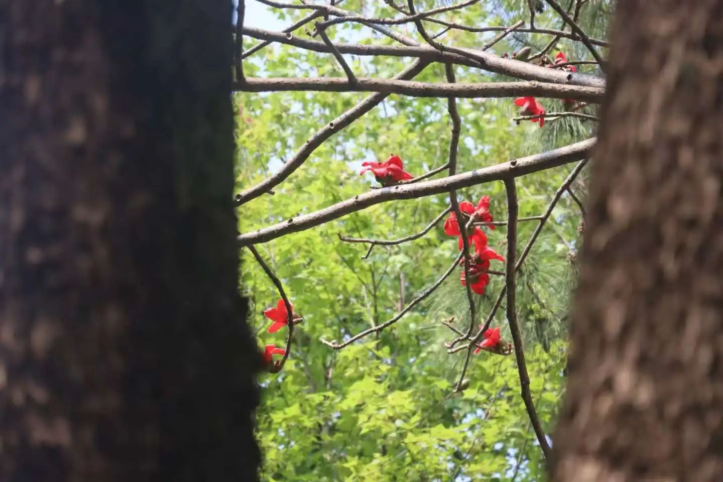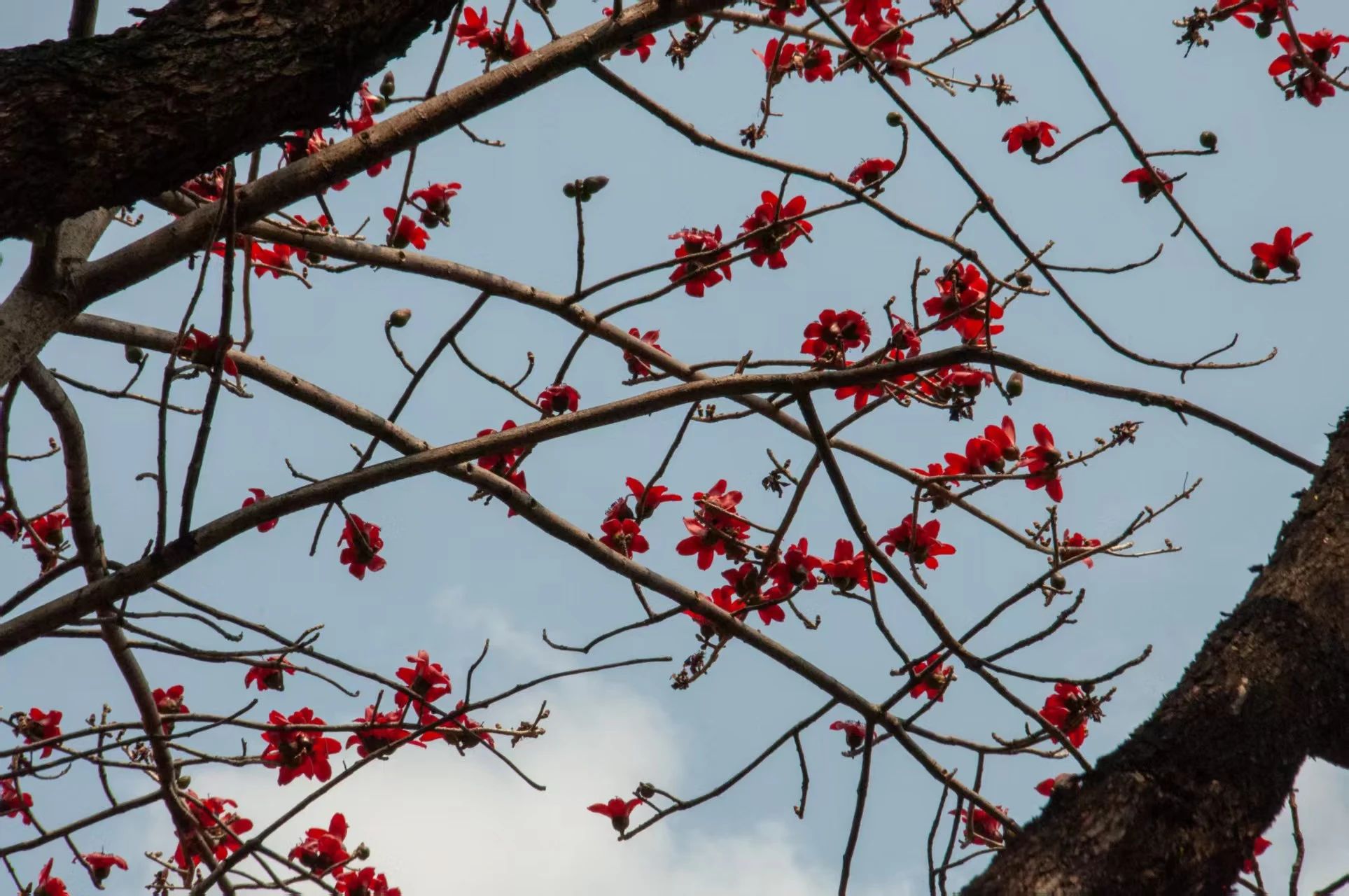 “红棉怒放映春城,万朵红云照眼明。”木棉,木棉科木棉属,又名英雄树,是一种著名的观赏树种。其树干粗壮,枝叶稀疏,花朵大而鲜艳,呈橙红色或橙黄色,花期在春季。
