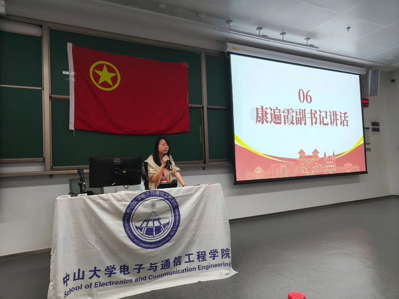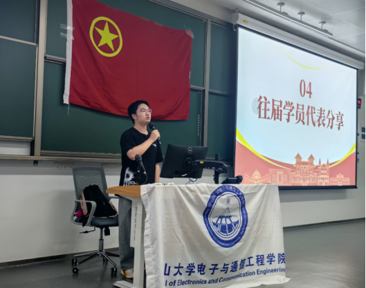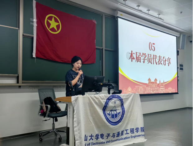 先进雷达成像与预警探测学生党支部书记、2023级硕士研究生孙一心介绍学院党建工作特色和入党流程: